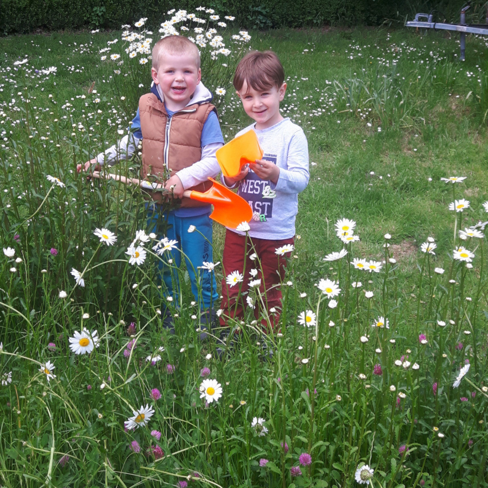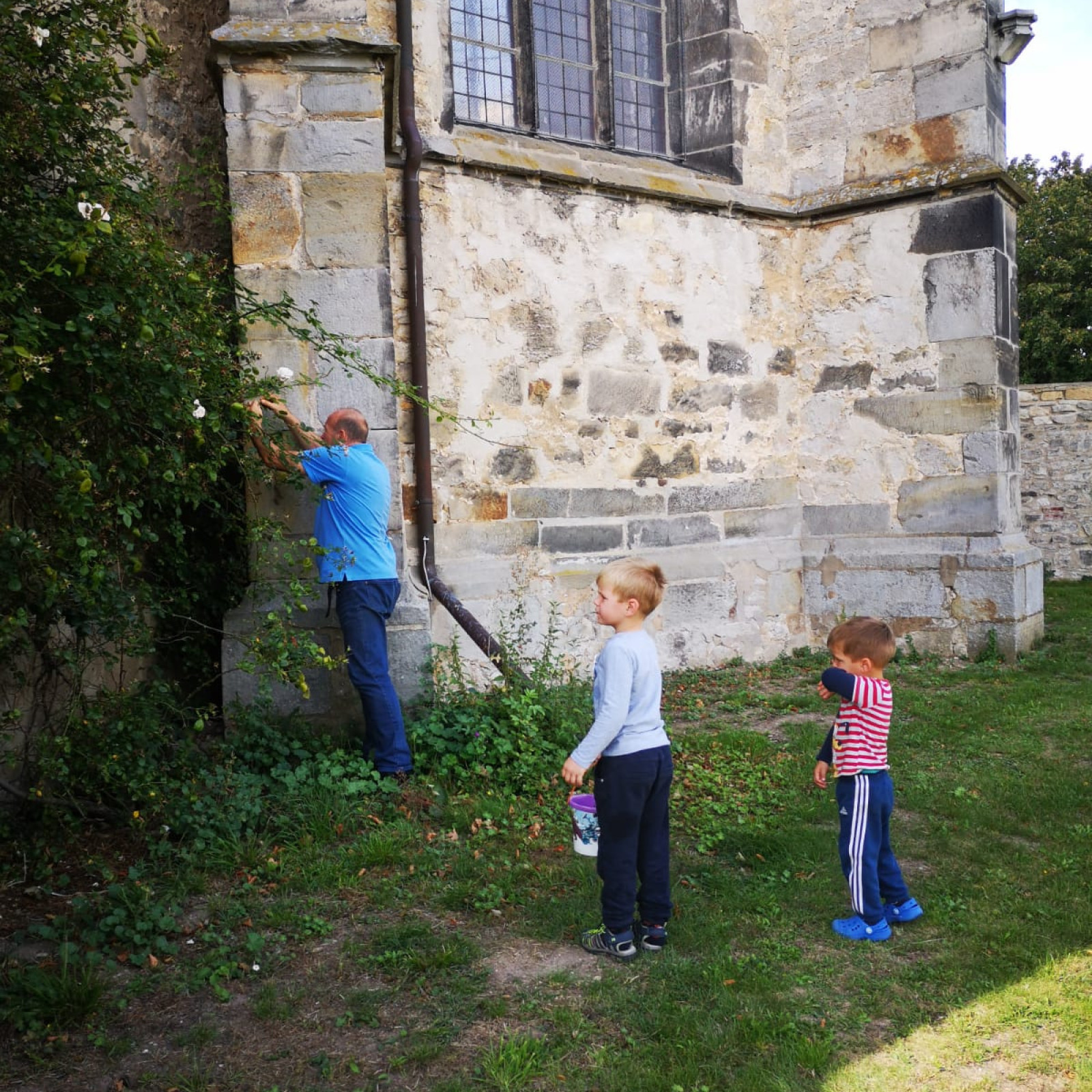 Unsere Kinder sind mit uns unterwegs im Dorf, im Garten und im Garten der Klosterkirche